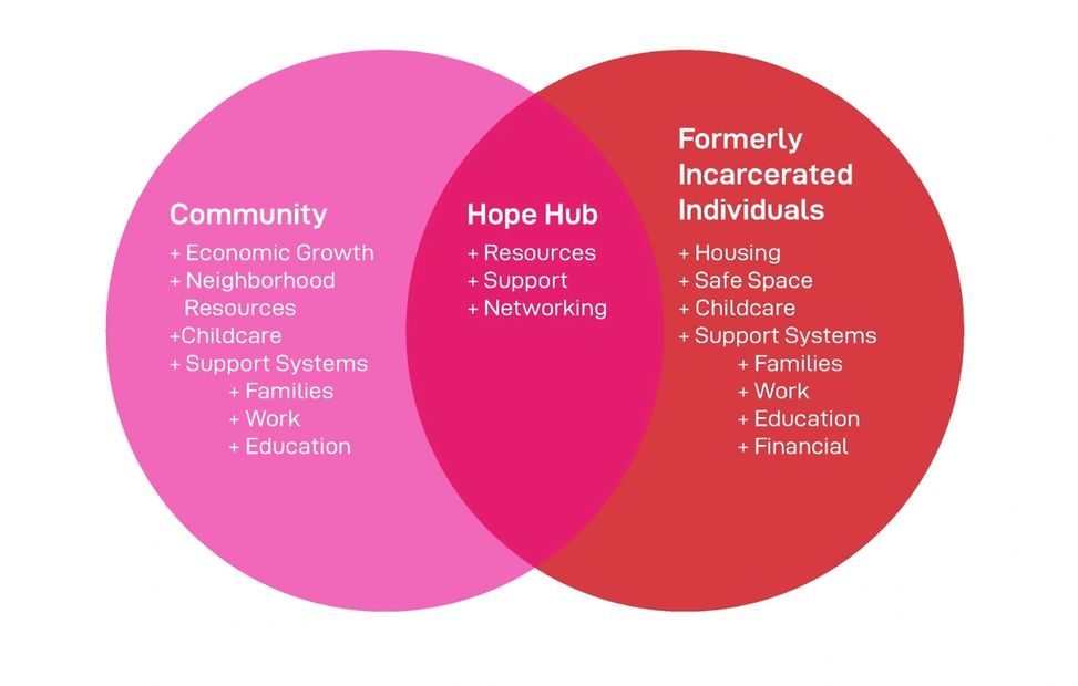 We propose a community center that establishes a resource and support network between formerly incarcerated individuals and the communities they will return to. The components of this effort will include: Community Driven Programming; LOHM Services and Support and Newly Renovated Building .